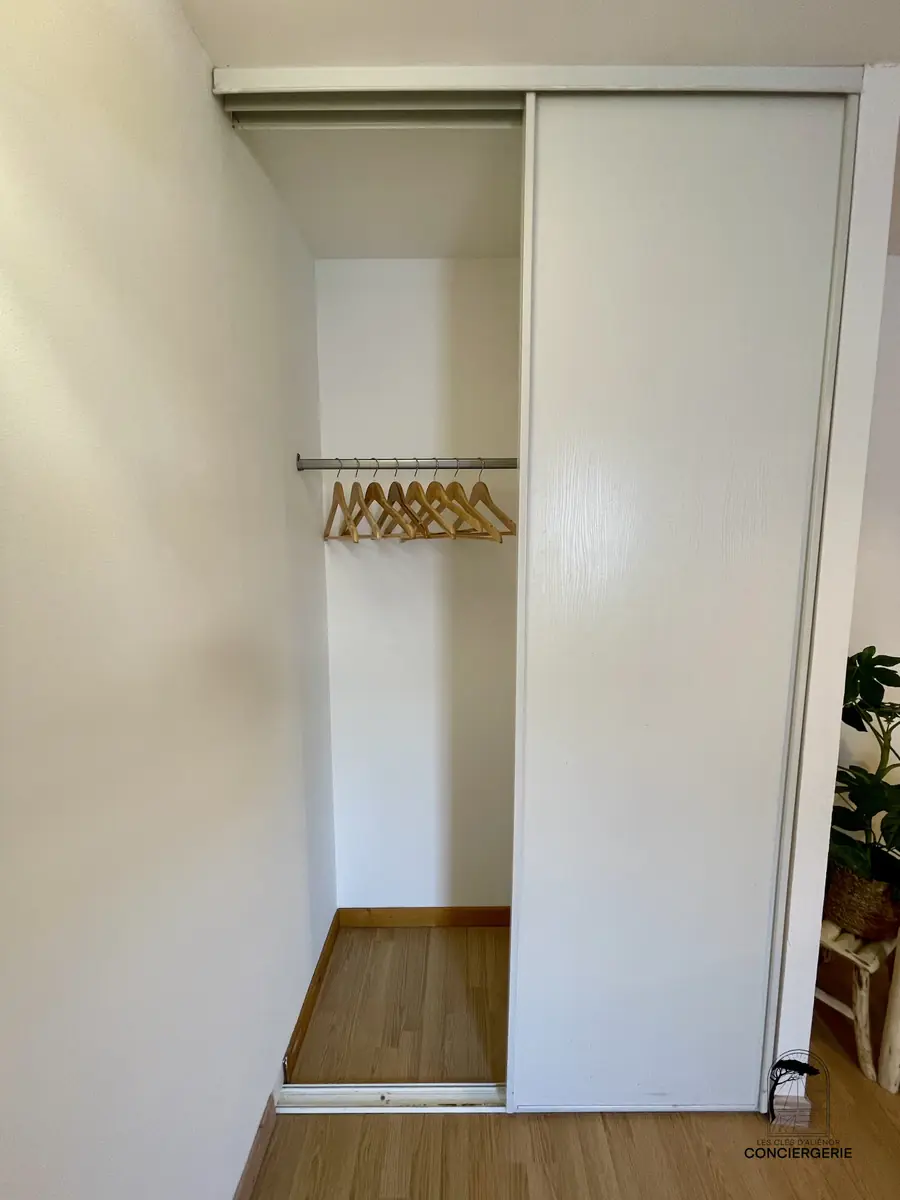 Rez-de-chaussée : cuisine équipée avec lave-vaisselle, four micro-ondes, réfrigérateur-congélateur, four traditionnel, plaque de cuisson induction, machine à café Nespresso, grille-pain et bouilloire. Cellier avec machine à laver et matériel de nettoyage. Salon avec meuble TV, télévision connectée avec Chromecast, canapé 3 places, deux fauteuils, un pouf, deux tables basses, table à manger et 6 chaises. WC séparé au rez-de-chaussée. Étage : chambre 1 avec lit double 160x200, placard-penderie, chevets et appliques murales. Chambre 2 avec deux lits 80x200 convertibles en 160x200, portant à vêtements en bois, chevets et appliques. Chambre 3 avec deux lits 80x200 convertibles en 160x200, portant à vêtements en bois, chevets et appliques. Salle de bain avec grande douche à l'italienne, meuble vasque et radiateur sèche-serviette. WC séparé à l'étage. Extérieur : petite cour fleurie avec table, 6 chaises et barbecue. Stationnement devant la maison ou sur le petit parking (pas de place réservée). Literie entièrement neuve. Maison équipée d'un Chromecast pour regarder films et séries. Logement strictement non-fumeur. Le linge de maison n'est pas fourni mais peut être loué auprès de la conciergerie Les Clés d'Aliénor.